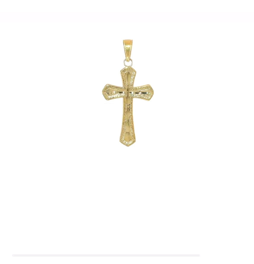 10K GOLD - DIAMOND CUT BEVELED EDGES CROSS PENDANT