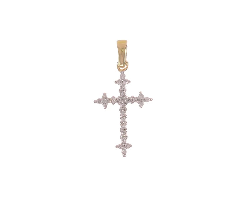 14K GOLD - LAB DIAMOND FLEUR DE LIS CROSS PENDANT