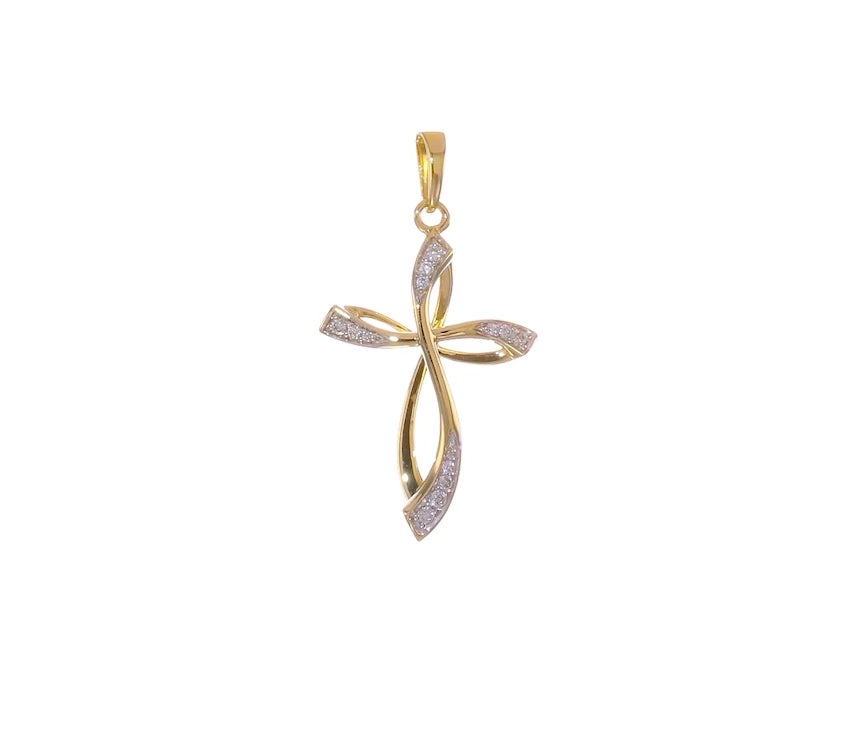 14K GOLD - LAB DIAMOND WOMEN’S CROSS PENDANT