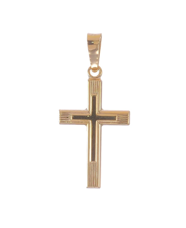 14K GOLD - POLISHED CROSS PENDANT.