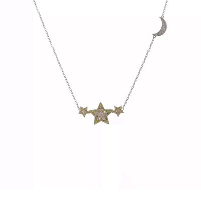 14K TWO-TONE GOLD - LAB DIAMOND STARS & MOON NECKLACE