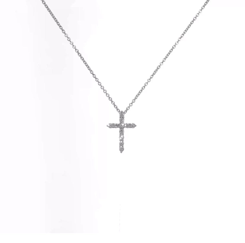 14K WHITE GOLD - LAB DIAMOND CROSS NECKLACE