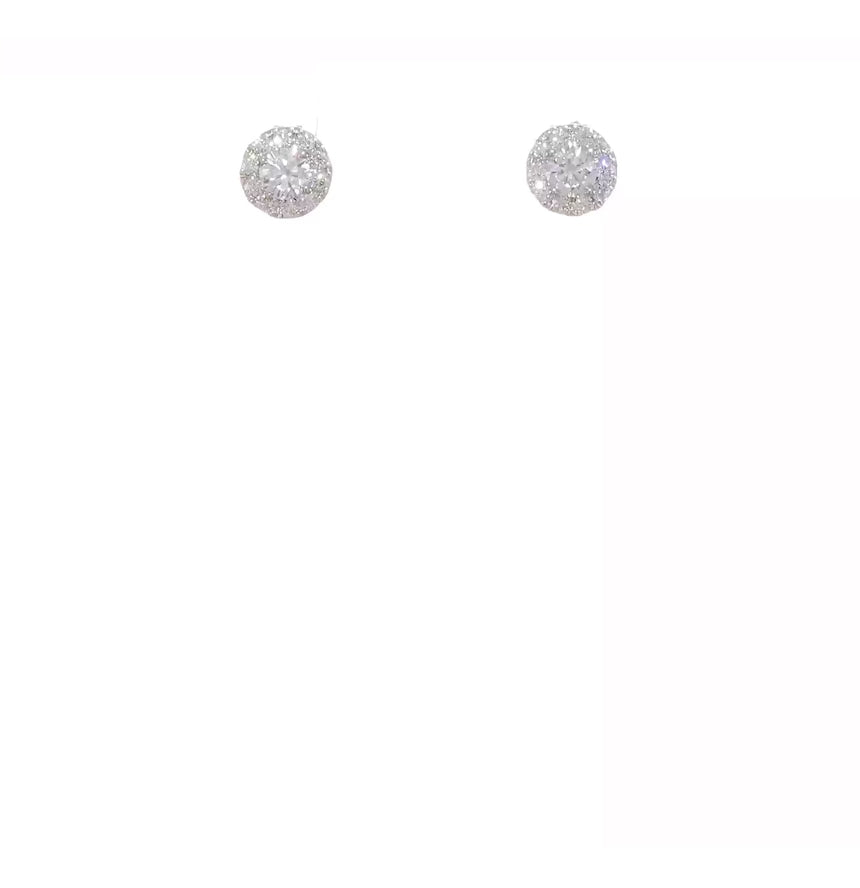 14K WHITE GOLD - LAB DIAMOND ROUND HALO EARRINGS