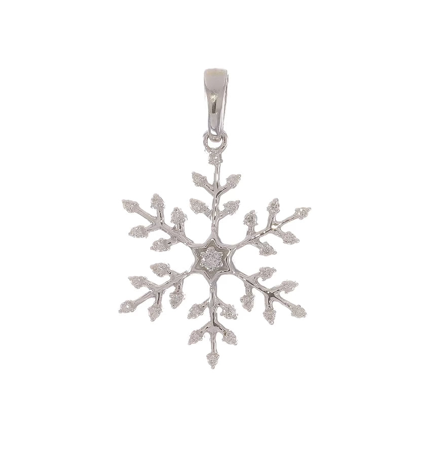 14K WHITE GOLD - LAB DIAMOND SNOWFLAKE PENDANT