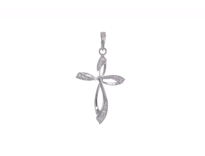 14K WHITE GOLD - LAB DIAMOND WOMEN’S CROSS PENDANT