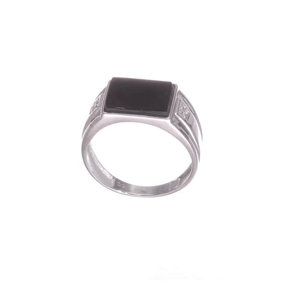 14K WHITE GOLD - MEN’S ONYX & DIAMOND RING