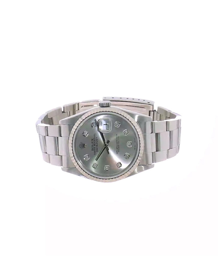 CERTIFIED PRE-OWNED ROLEX - SILVER DIAMOND DIAL & 18K FLUTED BEZEL WATCH